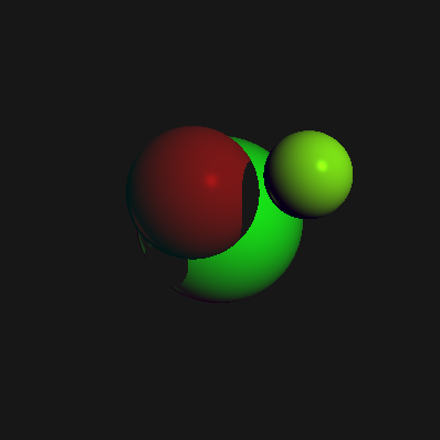 Esferas nas posições (0,0,-5), (-0.2,0.2,-2) e (0.6,0.3,-1.5) com